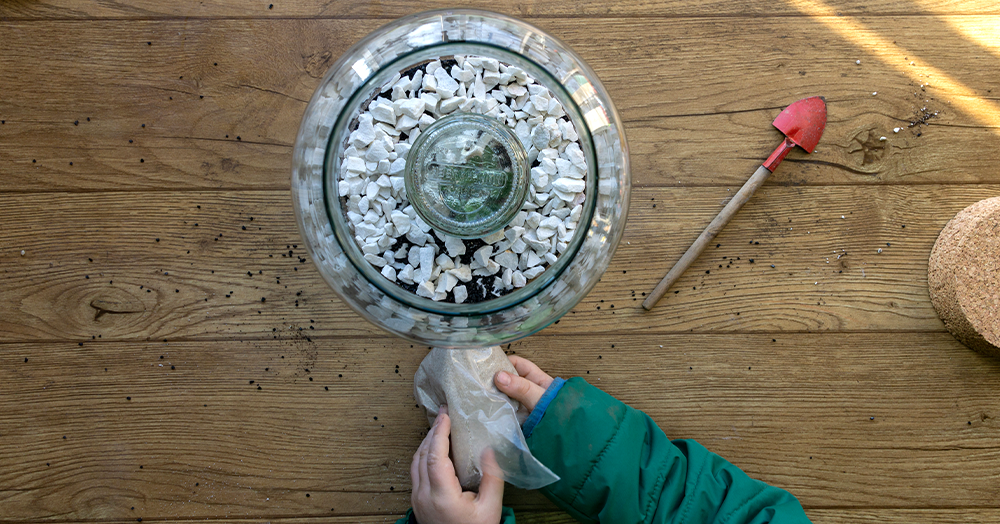 Craft kids will love creating a customized terrarium for succulents or air plants! Start with a glass or plastic terrarium, and have them fill the bottom with a cactus-friendly soil blend. (The soil choice is important for keeping succulents alive) Let them add any decorations they can get their hands on; plastic dinosaur figurines, polished rocks, even small rhinestones and fake gold nuggets. Younger kids may do best with air plants, which they can simply throw into the terrarium. Kids with a bit more dexterity can try their hand at gently transplanting succulents, backfilling with a little extra soil. Keep the terrarium in a sunny spot! Air plants should be soaked every few days and allowed to dry on a towel before returning to the terrarium. For succulent terrariums, add a little water directly to the soil after transplanting, and always avoid getting water directly on the plant.