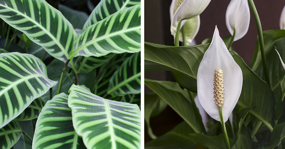 Spathiphyllum, or Peace Lily, is another fairly easy-care houseplant that is low-light tolerant. They do like bright light and will bloom more frequently if they get bright but indirect light. They’ll grow beautiful foliage in lower-light situations, but are less likely to bloom. Watering needs are similar to Calathea, keep it in a pot with a drainage hole and a saucer, and water when the top of the soil is dry. Peace Lily will have a very dramatic recovery if they dry out, and then are watered, but this is very stressful for the plant.